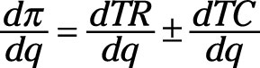 The derivative of ð with respect to q equals the sum (the functions can be added or subtracted) of the derivatives of TR and TC with respect to q, or,